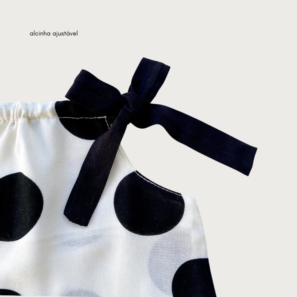 Inspirado na alegria dos dias ensolarados e no charme das coisas simples, esse conjunto é como um abraço de infância. Feito inteiramente na estampa poá um clássico que nunca sai de cena ele traz leveza, frescor e muito estilo para o dia a dia das pequenas.