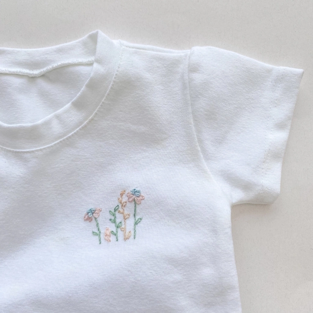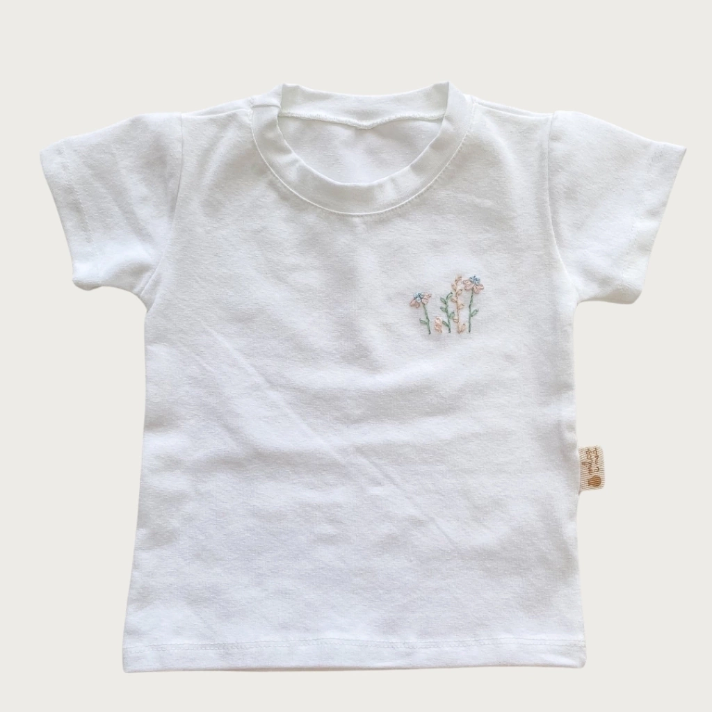 Com um design minimalista e monocromático, o conjunto foi criado para valorizar o conforto e a praticidade no dia a dia das pequenas. Mas foi no detalhe do bordado artesanal de pequenas flores que ele ganhou um charme único – cada ponto cuidadosamente feito com amor, tornando cada peça especial e cheia de significado.