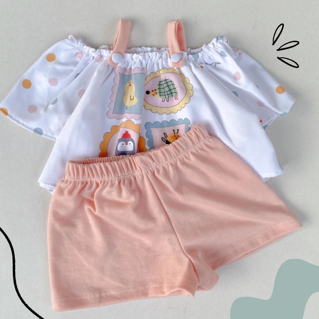 Composição: blusa vuarê 100% viscose / Short Malha 100% algodão orgânico