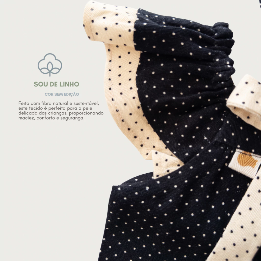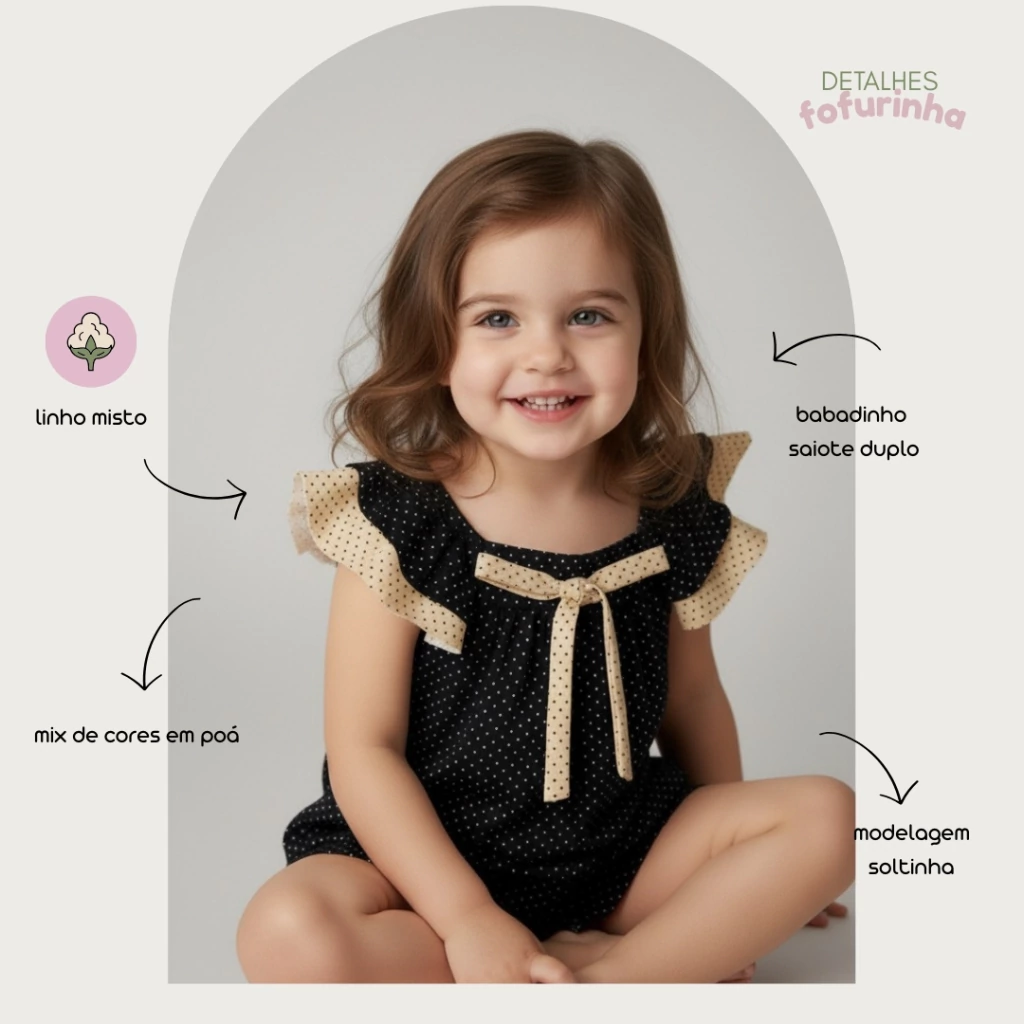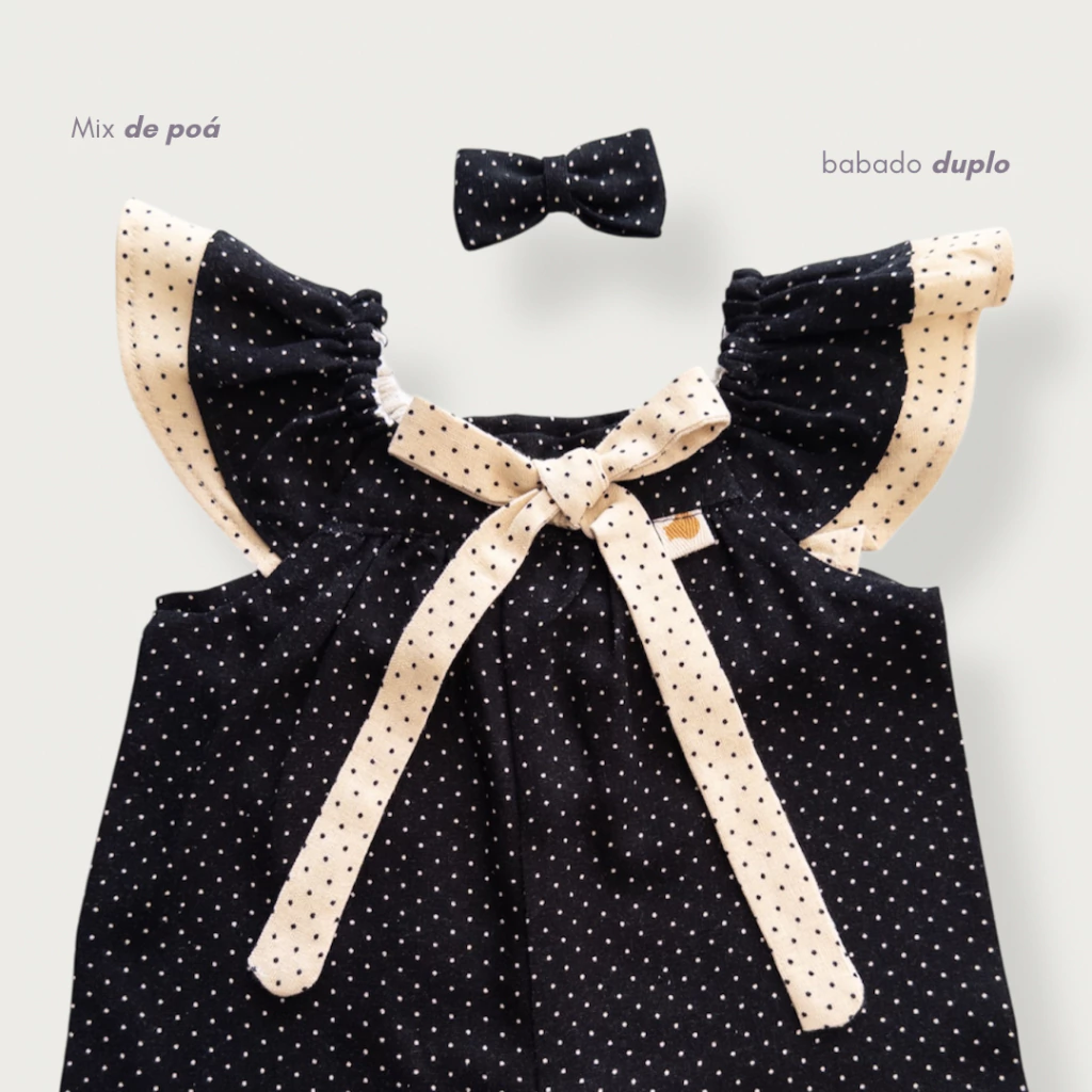 Entre poás que dançam e babadinhos que encantam, nasce um macacão feito para celebrar a infância com leveza e graça.