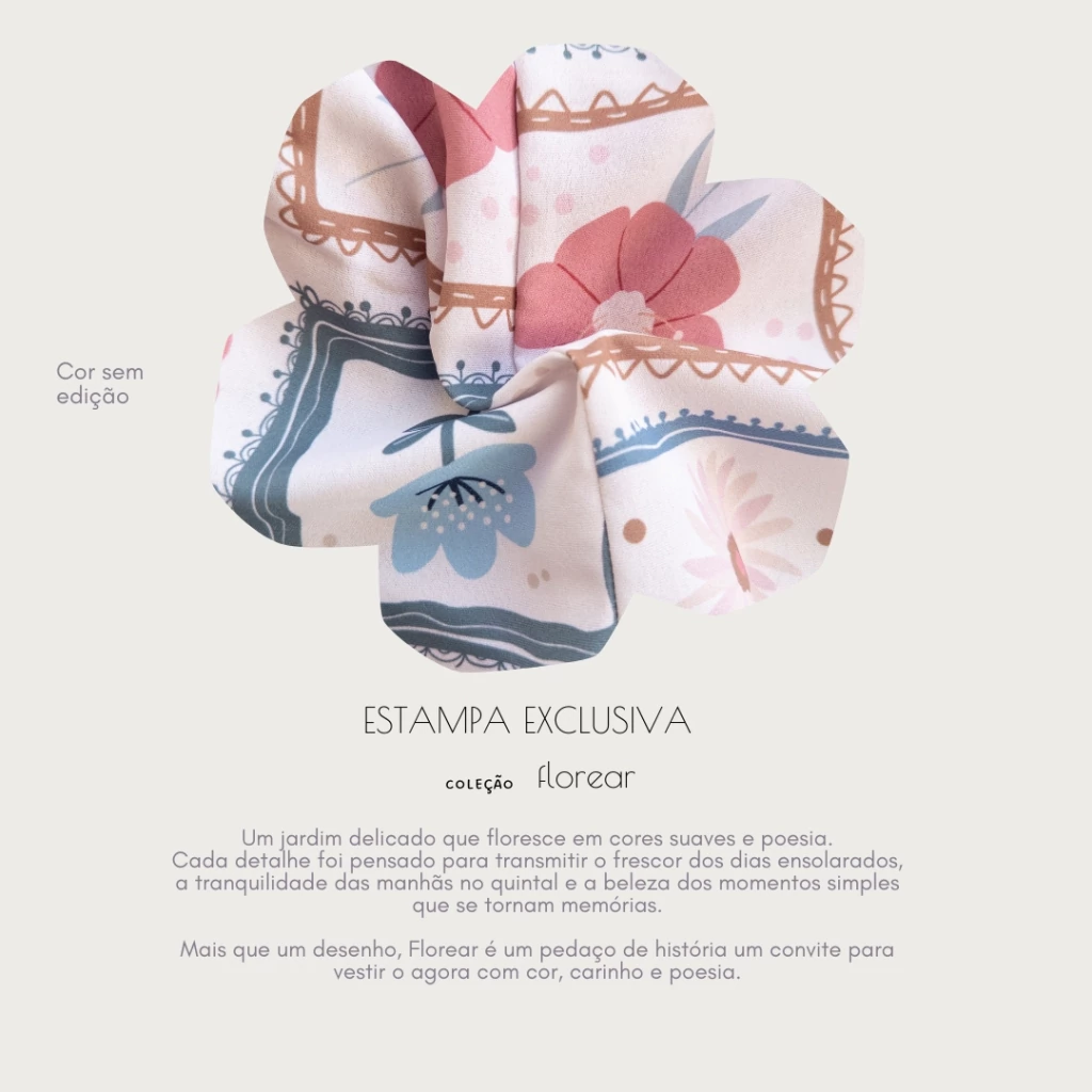 Cada moldura de flores é como um pequeno quadro, guardando histórias e sorrisos, e transformando o vestir em um ato de afeto.