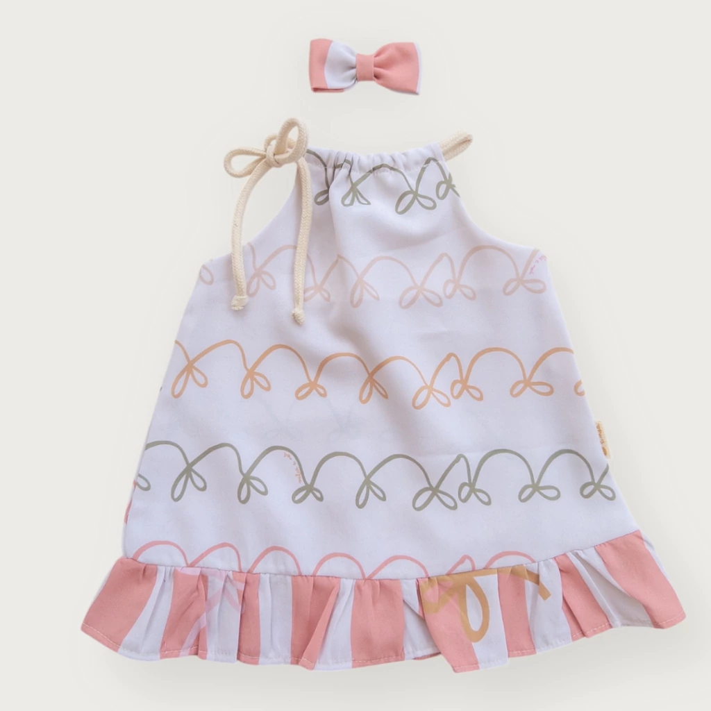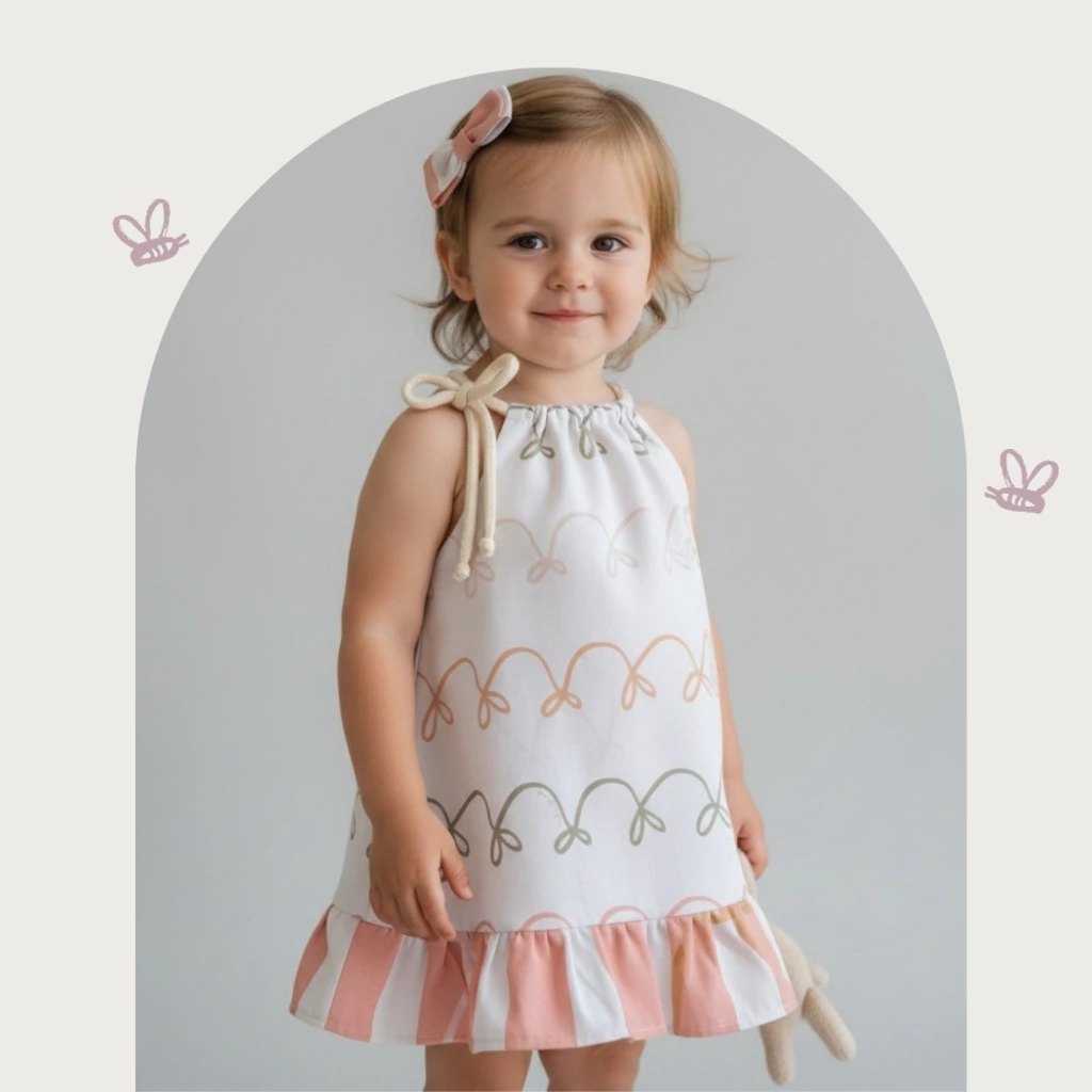 Um vestido que celebra a infância com cor, leveza e laços muitoooooooos laços.