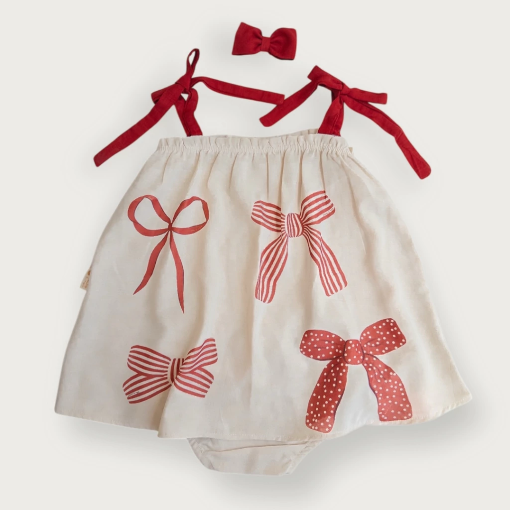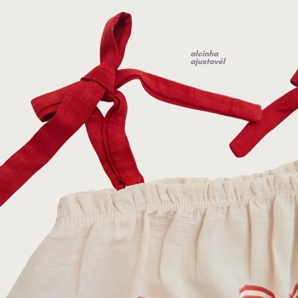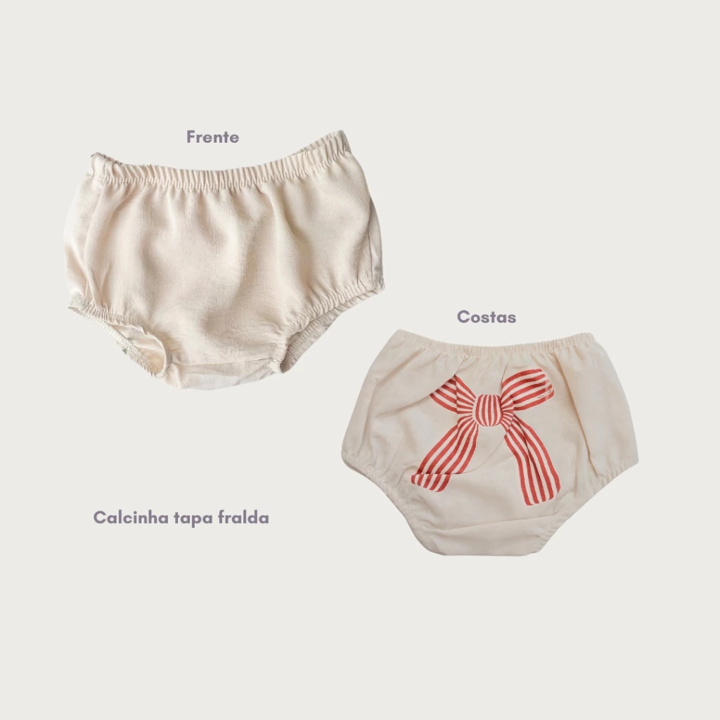 Com uma modelagem soltinha estilo saiote, o vestido garante a liberdade que as pequenas precisam para brincar e explorar o dia todo. As alcinhas com lacinho ajustável dão o toque delicado, permitindo um ajuste perfeito e muito estilo. E, para completar o visual, o conjunto vem com calcinha e lacinho de cabelo, combinando perfeitamente para um look fofo e prático.