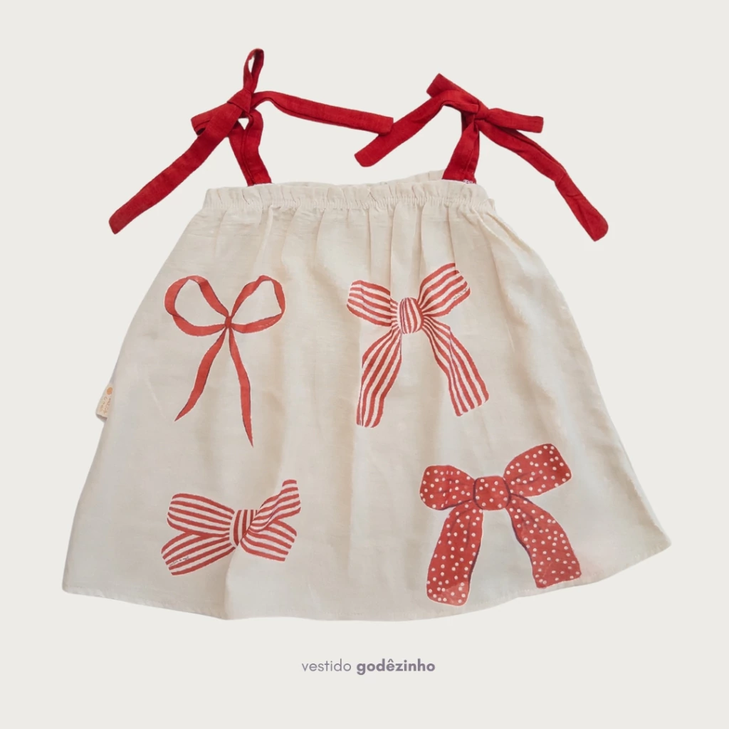 Este vestido é mais do que uma peça de roupa; é uma celebração dos laços que unem gerações os abraços das mães, as risadas das crianças e o brilho nos olhos que atravessa o tempo. Suas cores, uma junção delicada do rosa e do vermelho, representam o calor do amor e a alegria que envolve cada encontro. E, como cada laço que atamos, ele traz consigo um toque de cuidado, representado em sua estampa em aquarela à mão, como um presente que nasce do coração.