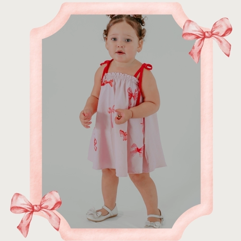 Com uma modelagem soltinha estilo saiote, o vestido garante a liberdade que as pequenas precisam para brincar e explorar o dia todo. As alcinhas com lacinho ajustável dão o toque delicado, permitindo um ajuste perfeito e muito estilo. E, para completar o visual, o conjunto vem com calcinha e lacinho de cabelo, combinando perfeitamente para um look fofo e prático.